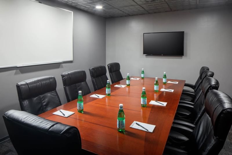 変なホテルニューヨークでは、会議、商談、面接、勉強会など様々な用途でご利用いただける貸会議室をご用意しております。最大10名様までご利用いただける23㎡の会議室では、大テーブル1台、PC接続用ディスプレイ(大型テレビ)、電源、会議用電話、インターネット(Wi-Fi)を備えております。ミッドタウン各所へのアクセスも良い、とても落ち着いた会議室の利用のご相談、空室確認はお気軽にお問い合わせくださいませ。